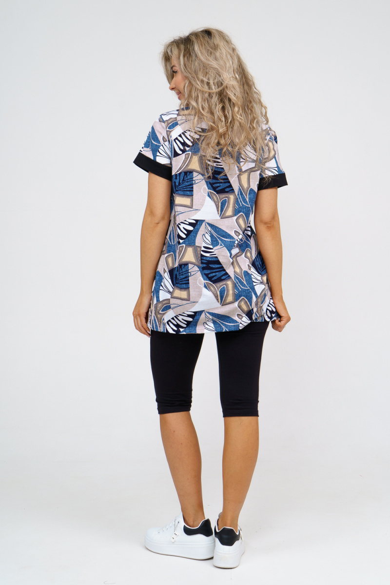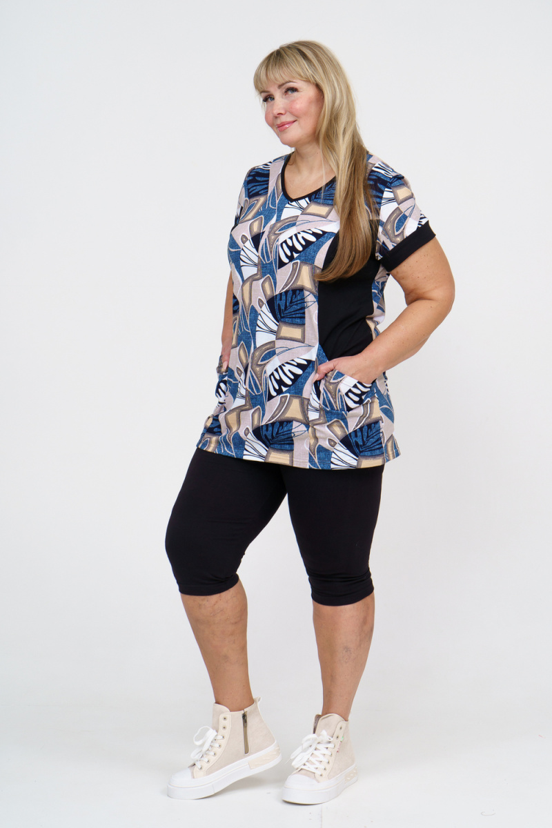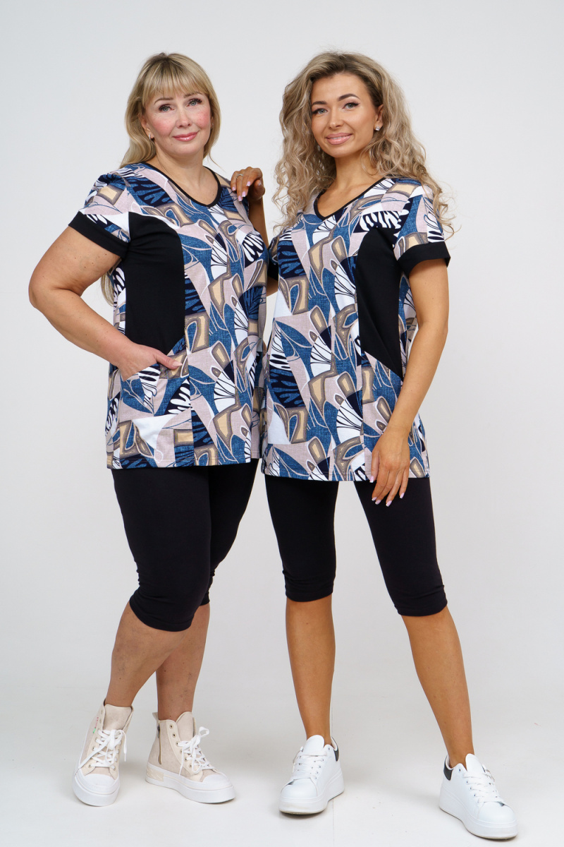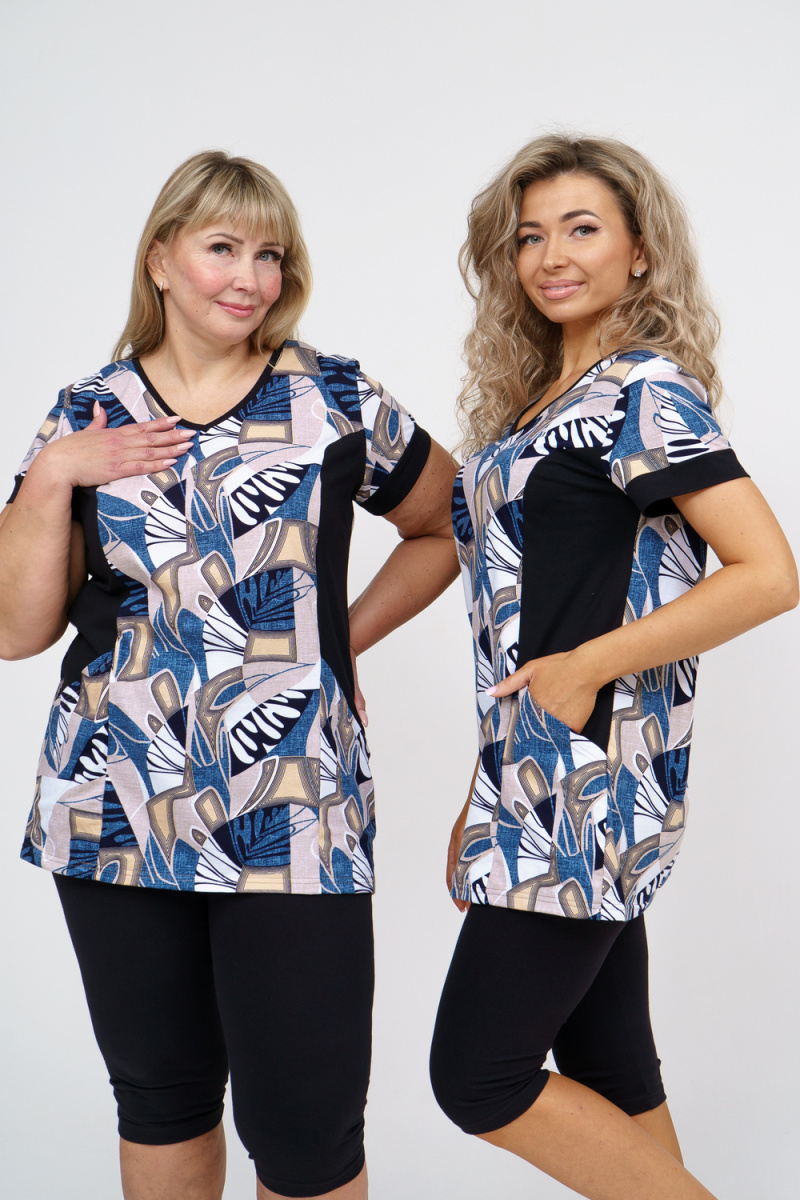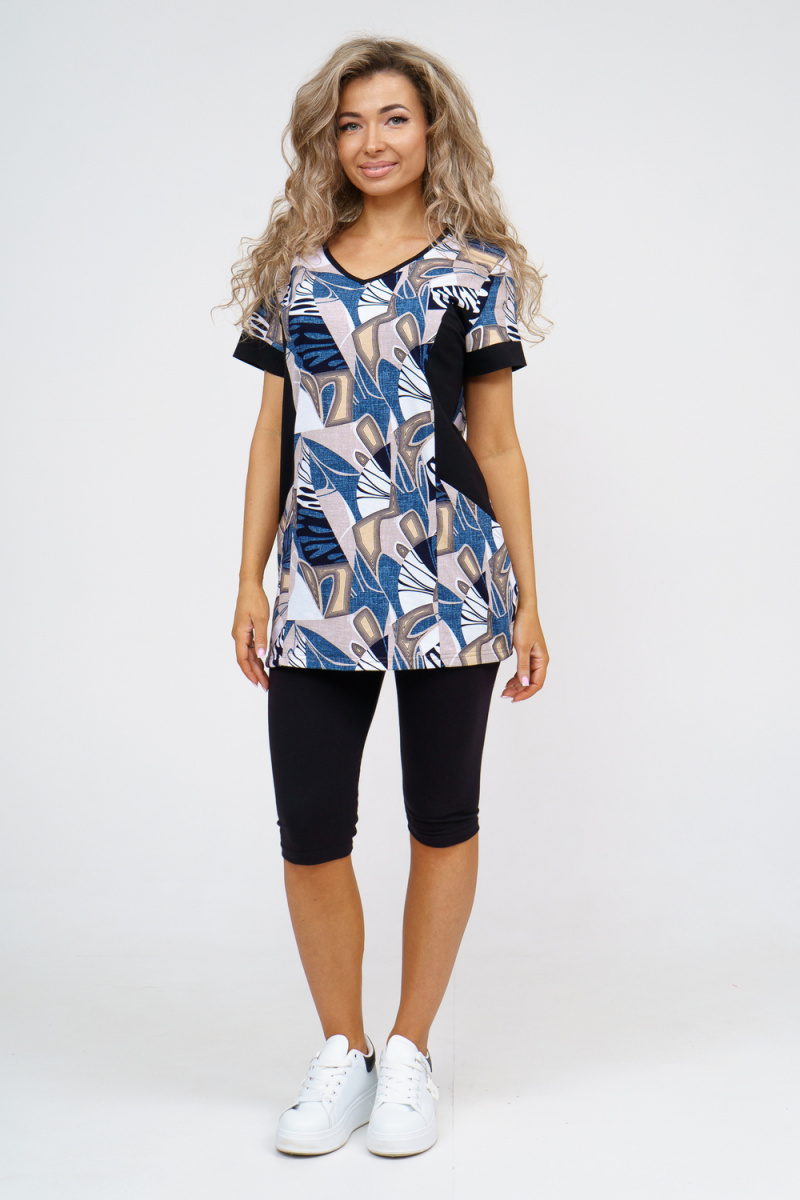 Женский костюм полуприлегающего силуэта состоит из туники и бриджей. 100% дышащий хлопок туники и эластичная вискоза бриджей несут в себе удобство при носке, гигроскопичность и износостойкость. V-образный вырез горловины придаёт изделию женственный вид. Для удобства туника имеет вместительные накладные карманы и втачные рукава с манжетами. Рельефы на полочке изделия создают идеальную посадку и безупречный внешний вид. Бриджи на резинке с высокой посадкой. В костюме такого плана Вы будете чувствовать себя комфортно как дома, так и на любимой даче. Эта двойка идеально подойдет для летнего отдыха на даче, на море или просто для девушек, которые хотят чувствовать себя уютно и комфортно дома. Летний женский костюм подходит для поездок и путешествий, загородного отдыха на природе, а также для получения лечения в больнице или санатории. Повседневное хлопковое изделие с бриджами - отличная идея для подарка любимой жене, маме, сестре или подруге на день рождения, 8 Марта или по любому другому приятному поводу. Рекомен