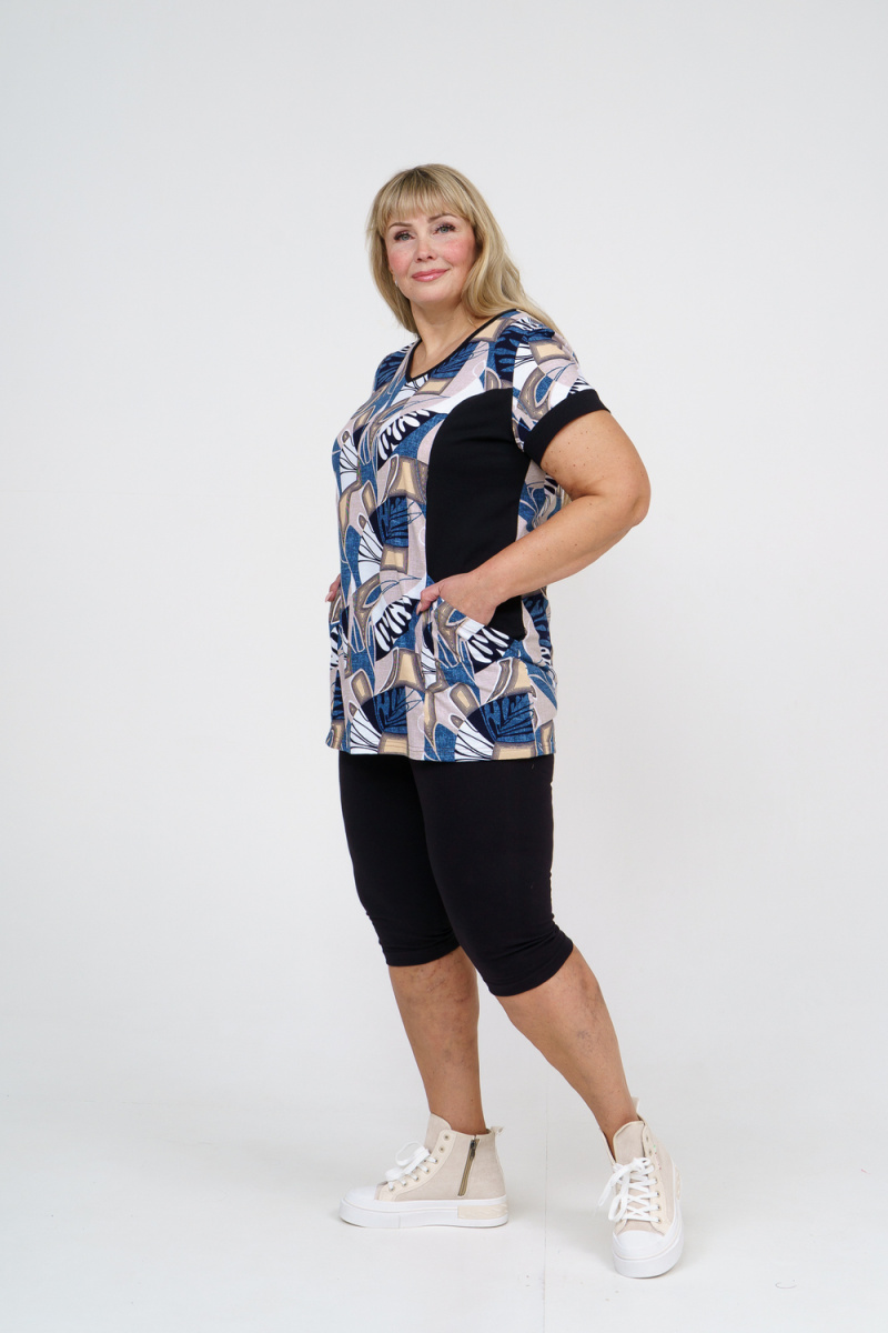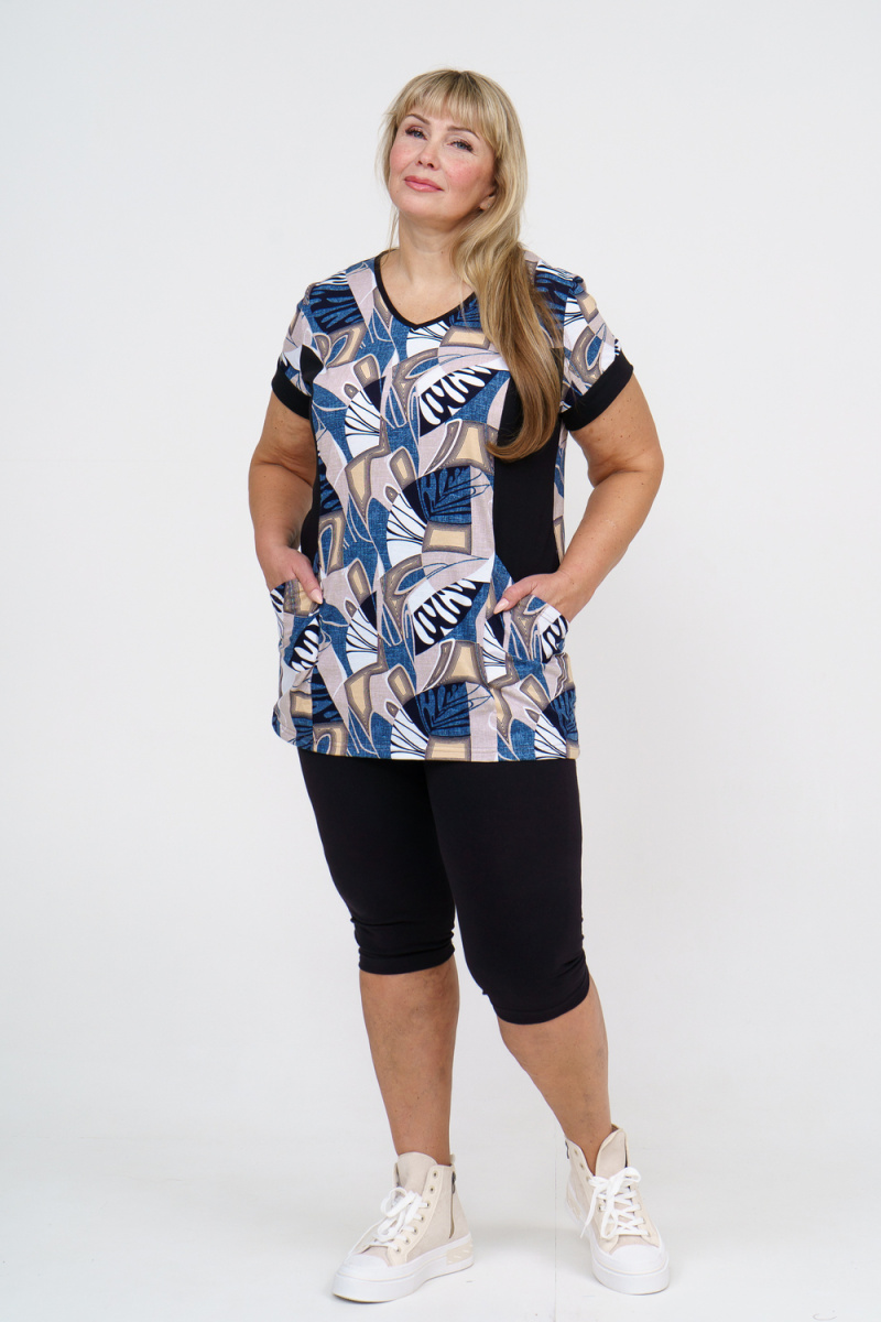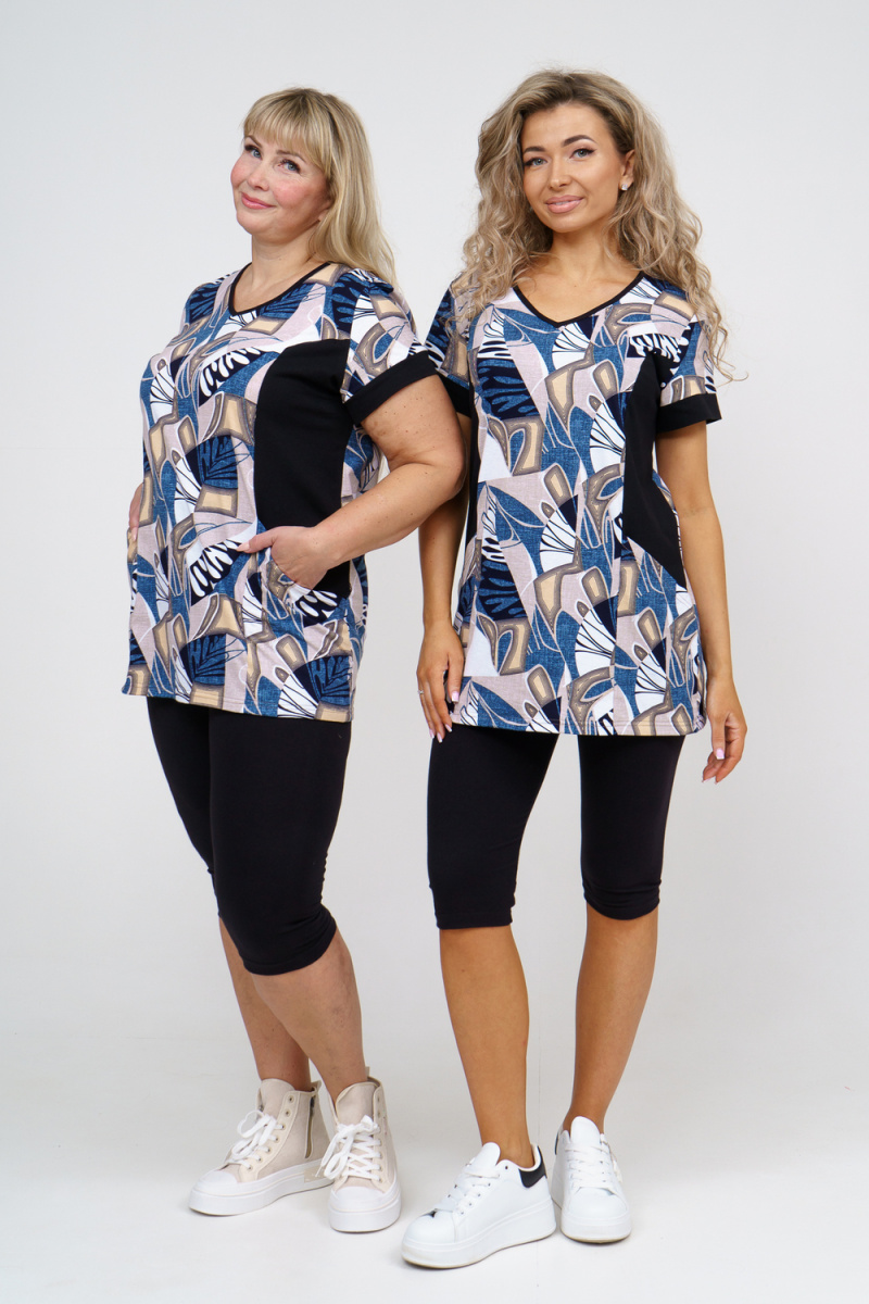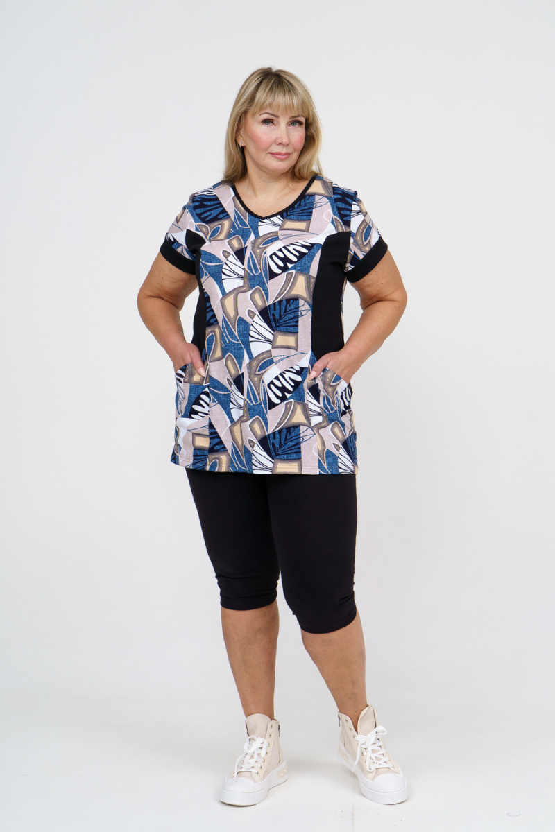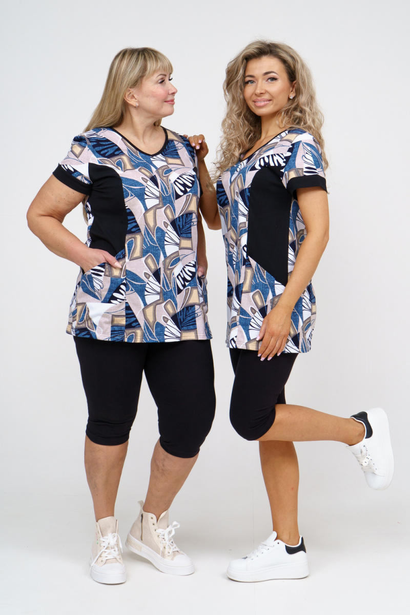 Женский костюм полуприлегающего силуэта состоит из туники и бриджей. 100% дышащий хлопок туники и эластичная вискоза бриджей несут в себе удобство при носке, гигроскопичность и износостойкость. V-образный вырез горловины придаёт изделию женственный вид. Для удобства туника имеет вместительные накладные карманы и втачные рукава с манжетами. Рельефы на полочке изделия создают идеальную посадку и безупречный внешний вид. Бриджи на резинке с высокой посадкой. В костюме такого плана Вы будете чувствовать себя комфортно как дома, так и на любимой даче. Эта двойка идеально подойдет для летнего отдыха на даче, на море или просто для девушек, которые хотят чувствовать себя уютно и комфортно дома. Летний женский костюм подходит для поездок и путешествий, загородного отдыха на природе, а также для получения лечения в больнице или санатории. Повседневное хлопковое изделие с бриджами - отличная идея для подарка любимой жене, маме, сестре или подруге на день рождения, 8 Марта или по любому другому приятному поводу. Рекомен