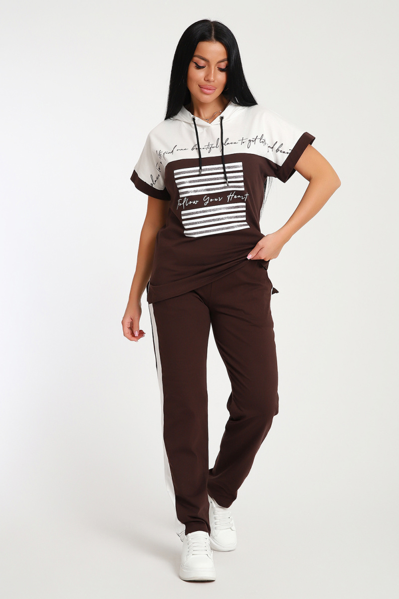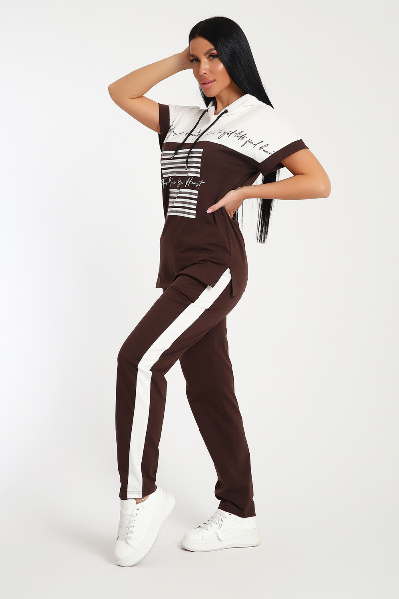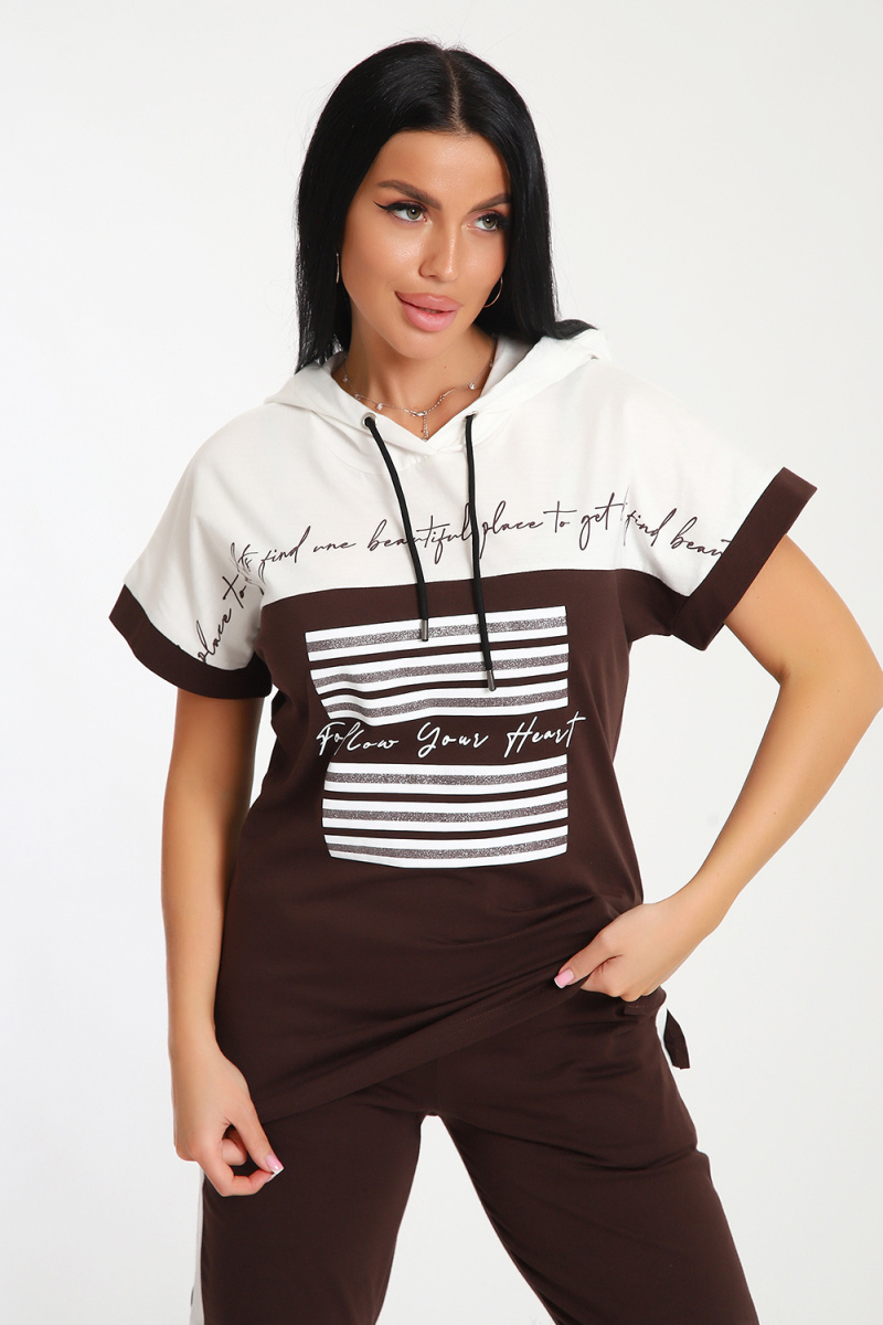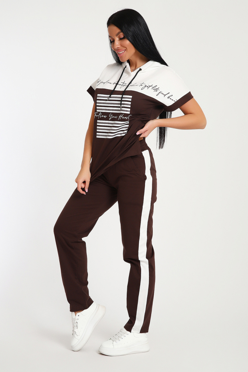 Невероятно женственный и стильный костюм из нежного хлопкового трикотажа, превосходно подходящий для повседневной носки, представляет собой гармонию элегантности и функциональности. Тщательный подход к деталям проявляется в каждой части этого комплекта- капюшон, декорированный изящными лентами контрастного цвета, придает дополнительное очарование, а аккуратно изготовленные швы подчеркивают премиальный уровень исполнения.