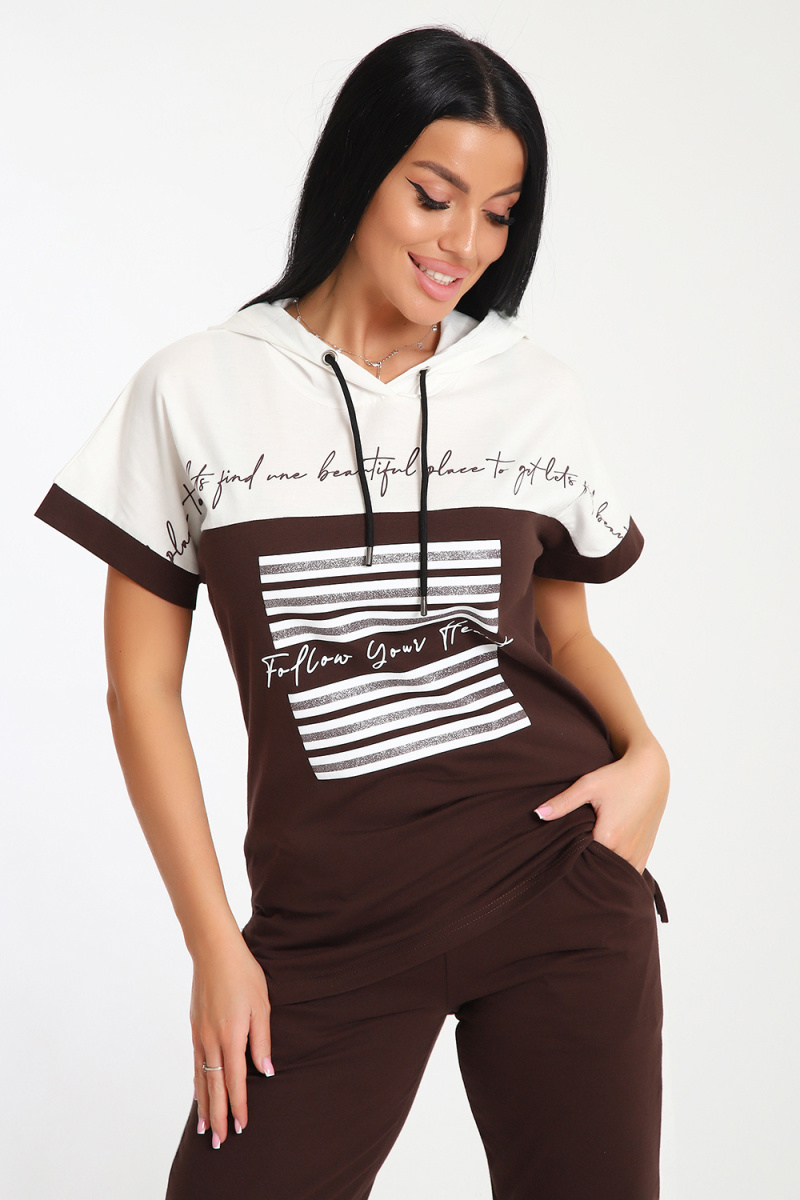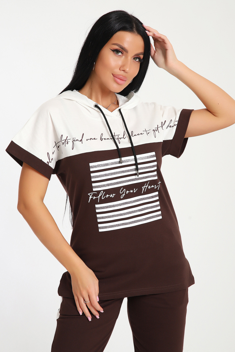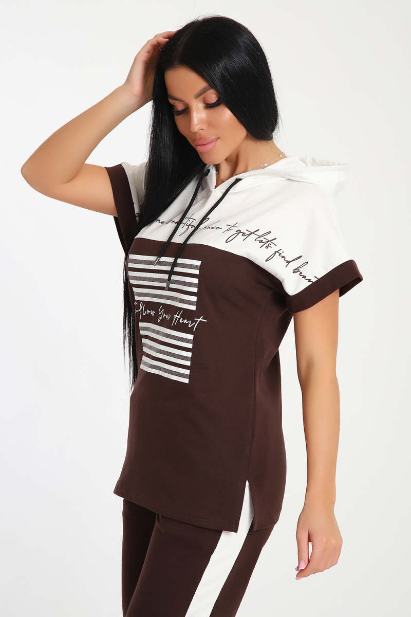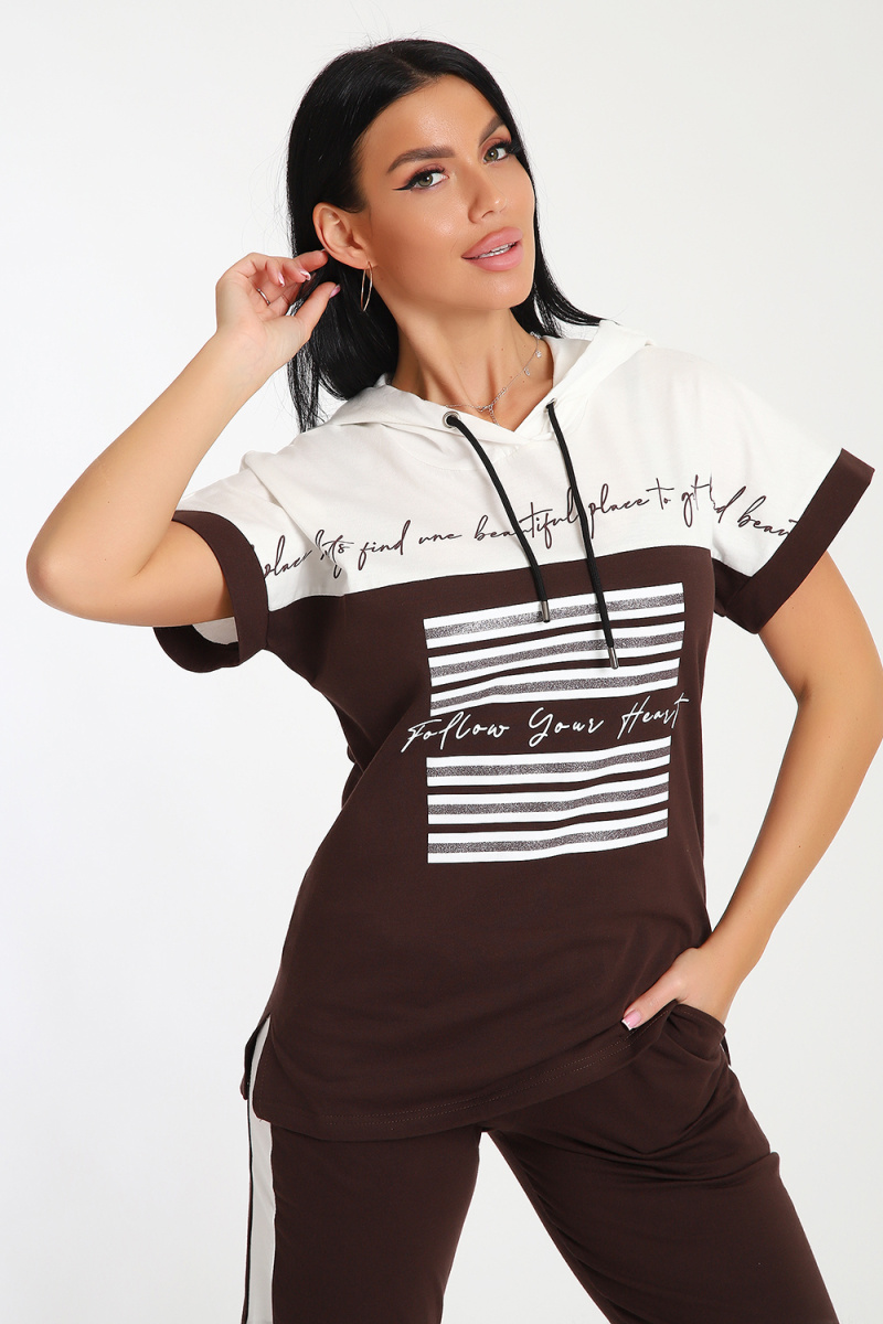 Невероятно женственный и стильный костюм из нежного хлопкового трикотажа, превосходно подходящий для повседневной носки, представляет собой гармонию элегантности и функциональности. Тщательный подход к деталям проявляется в каждой части этого комплекта- капюшон, декорированный изящными лентами контрастного цвета, придает дополнительное очарование, а аккуратно изготовленные швы подчеркивают премиальный уровень исполнения.